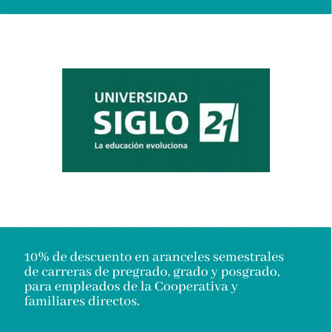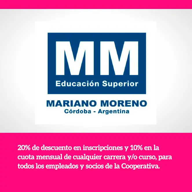 A través del área de RRHH, la Cooperativa tiene convenios con cinco instituciones educativas de Nivel Superior de la ciudad de Córdoba, para otorgar descuentos a empleados, socios y familiares directos.